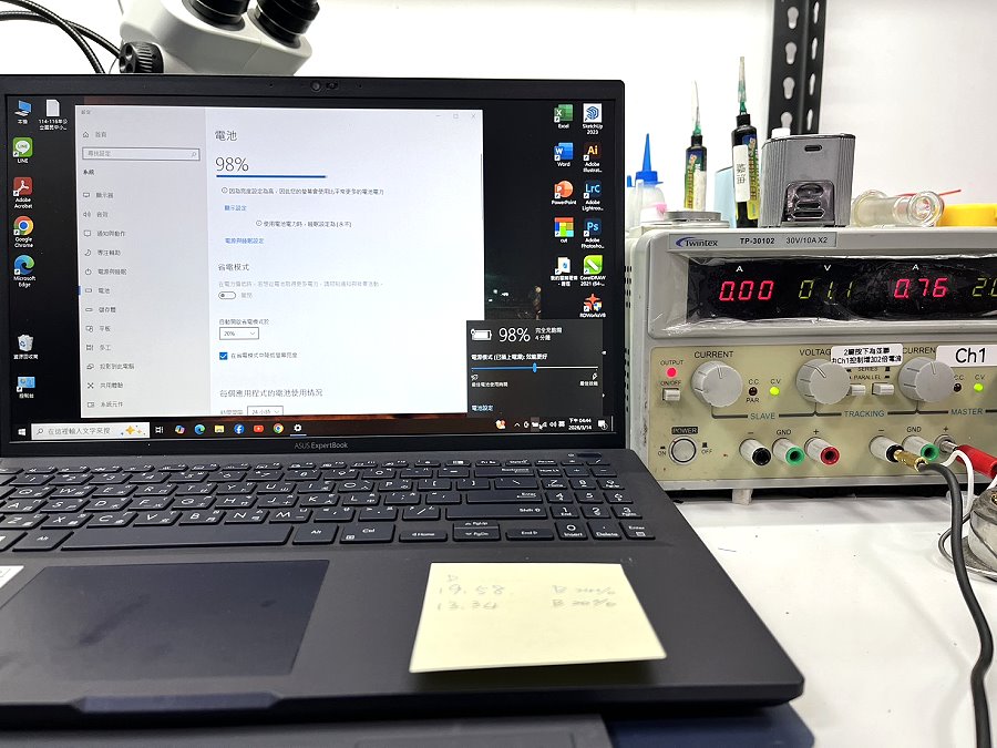 一台華碩(ASUS)商務型筆電 ExpertBook B1500C 送修,客戶描述機器在使用過程中,即便插著原廠充電器,會自動切換成電池模式 然後就把電池的電耗光