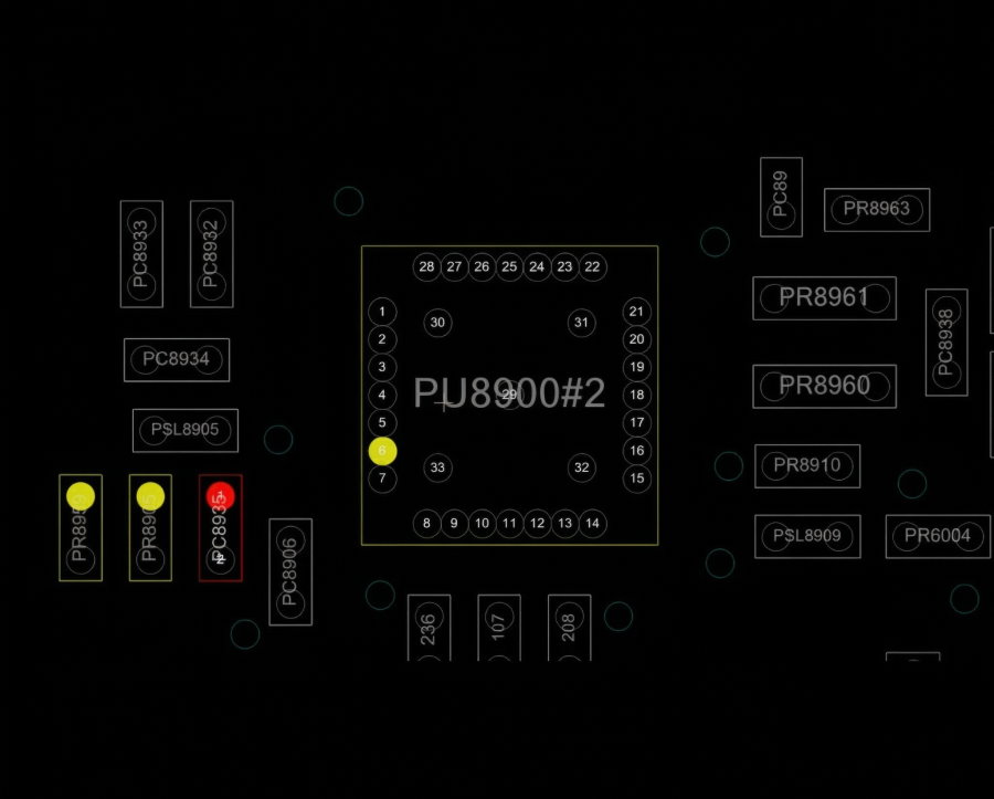 為了確定是不是PCB短路 我斷開了 PR8943 PR8959 發現左邊PR8943不再短路, 只有右側2個電阻 還有電容這線路短不能開的時候阻值幾乎為0 ,加熱了一下線路又恢復正常…