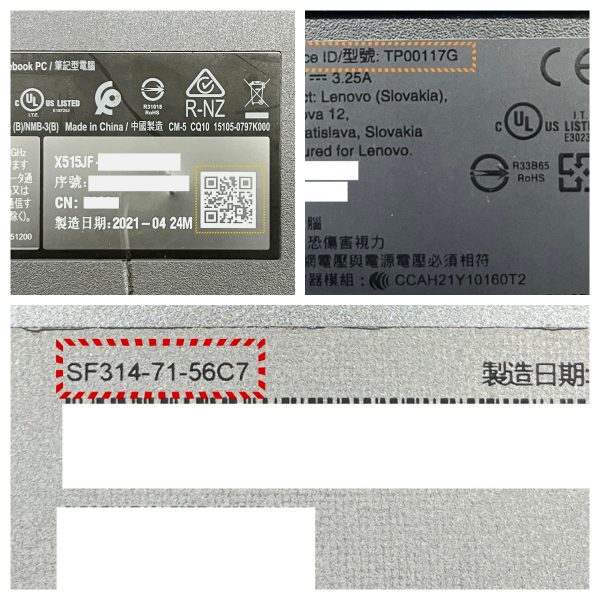 透過底部貼紙或 QR Code,即可快速辨識筆電型號與規格,大幅縮短維修確認時間。